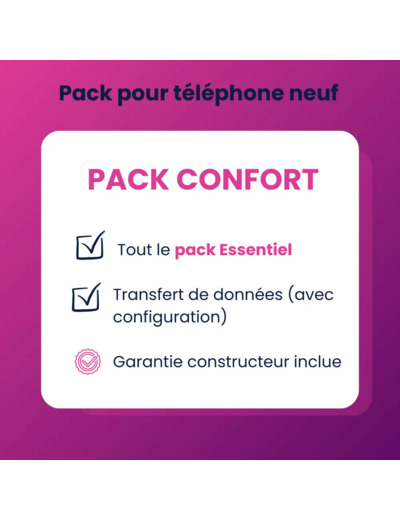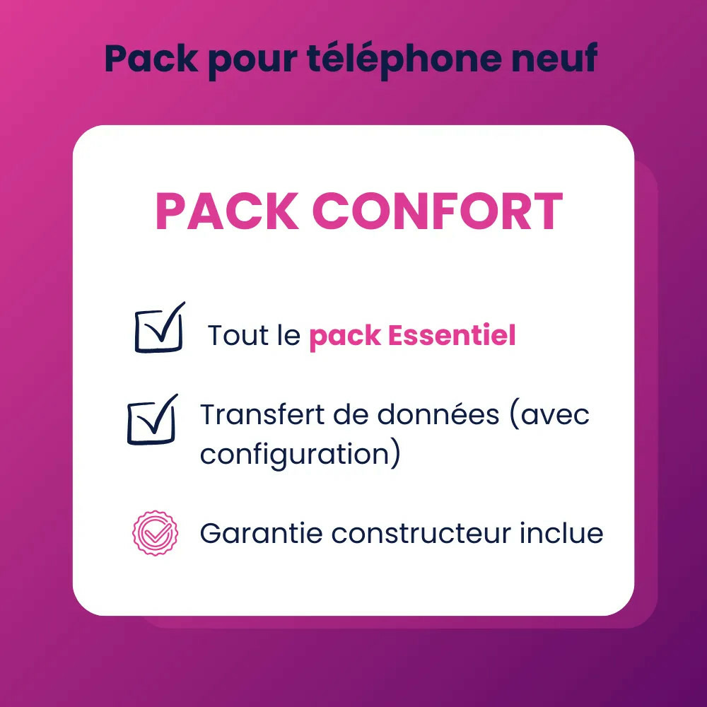 ✓ Pack Confort pour smartphone neuf ✓ protection complète ✓ adaptateur secteur inclus ✓ transfert des données avec configuration ✓ tranquillité immédiate ✓ garantie constructeur incluse