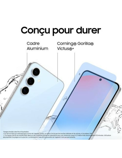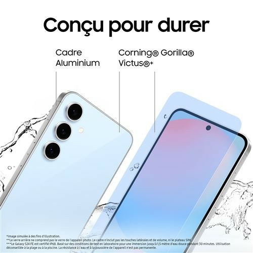 L’Exynos 2400e (4 nm) et 8 Go de RAM assurent une réactivité fluide pour les apps, le multitâche et le gaming léger. Gorilla Glass Victus+ et indice IP68 garantissent robustesse et design soigné.