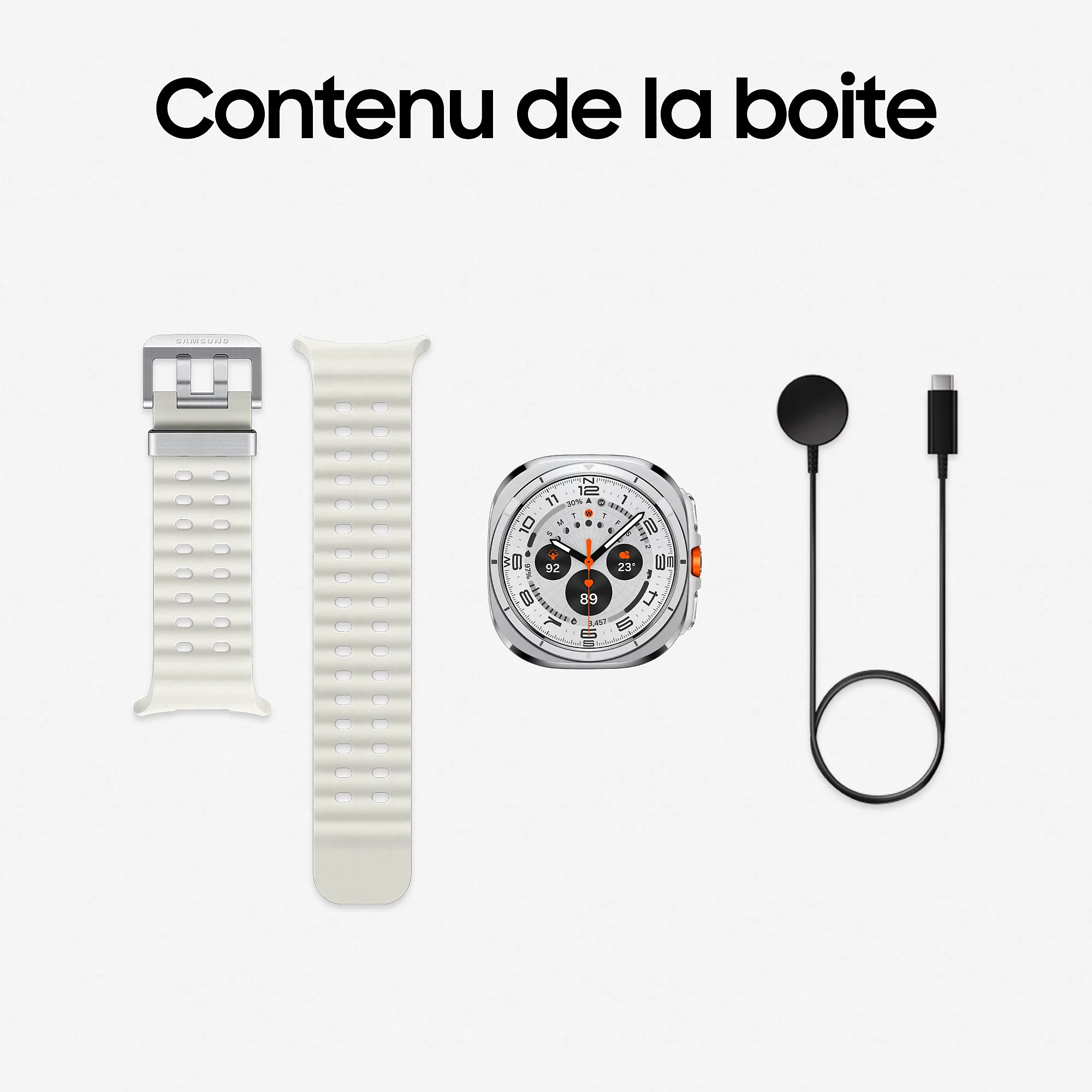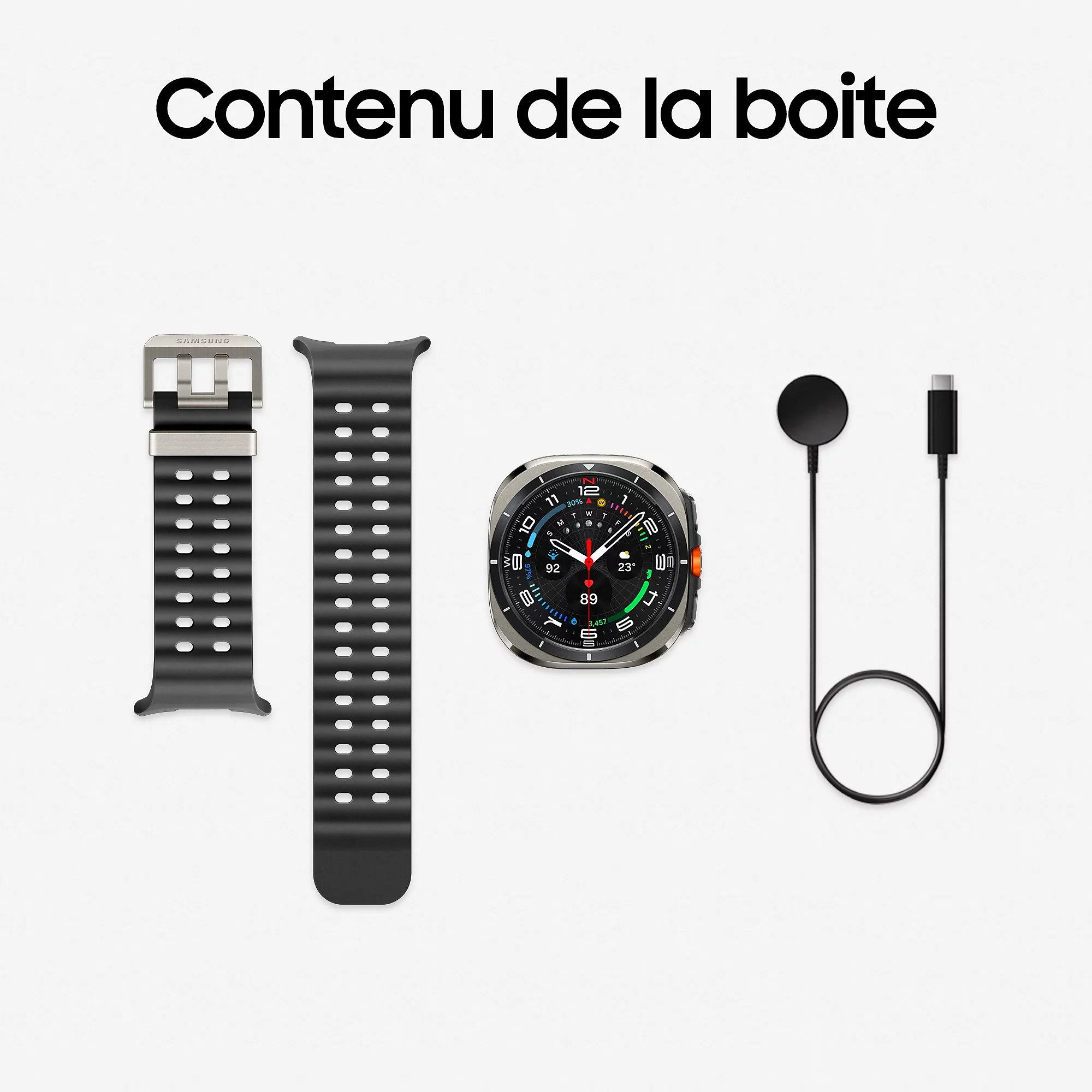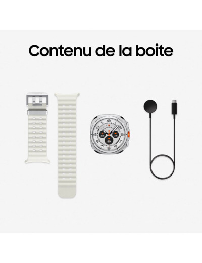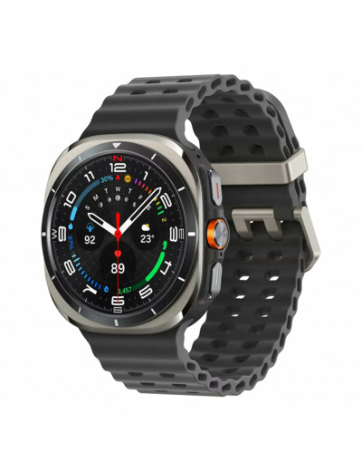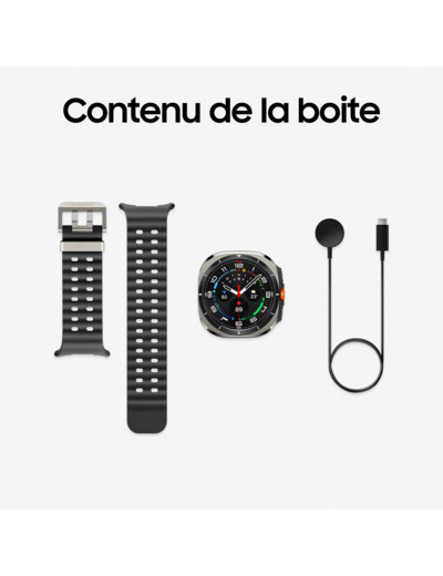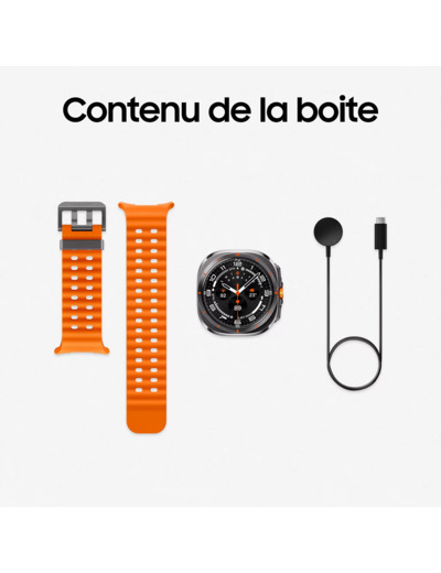 La Samsung Galaxy Watch Ultra (2025) allie un boîtier en titane poli avec un écran Super AMOLED 1,5″ protégé par verre saphir — conçu pour résister aux conditions les plus abruptes et idéal pour les activités outdoor intenses.
