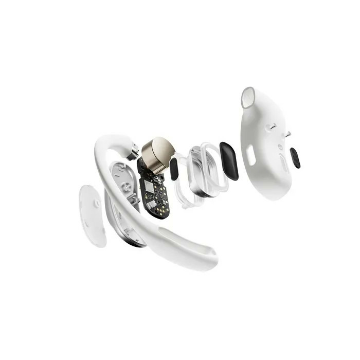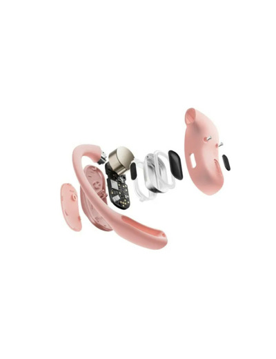 Les Shokz OpenFit Air adoptent une approche "open-ear" innovante : ils se posent devant le conduit auditif, sans l’obstruer, et sont maintenus par des crochets souples autour de l’oreille. Disponibles en noir, blanc et rose, ils combinent confort au porté (environ 8,7 g) et réalité sonore, parfaits pour les sportifs ou déplacements urbains où la vigilance est de mise.