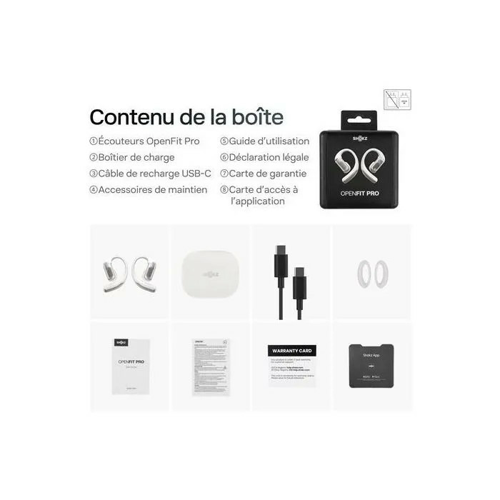 ✓ SHOKZ OpenFit Pro — écouteurs Bluetooth TWS à oreilles libres ✓ réduction de bruit ✓ appels clairs ✓ autonomie jusqu’à 12 h (jusqu’à 50 h avec boîtier, réduction de bruit désactivée) ✓ IP55 (écouteurs) ✓ Bluetooth 6.1 + MultiPoint