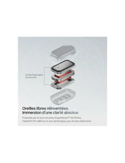 Avec la techno Shokz SuperBoost et DirectPitch, l’OpenFit Pro cherche un son puissant et détaillé, avec moins de distorsion. Idéal si vous voulez des basses présentes et une écoute agréable sans monter le volume inutilement.