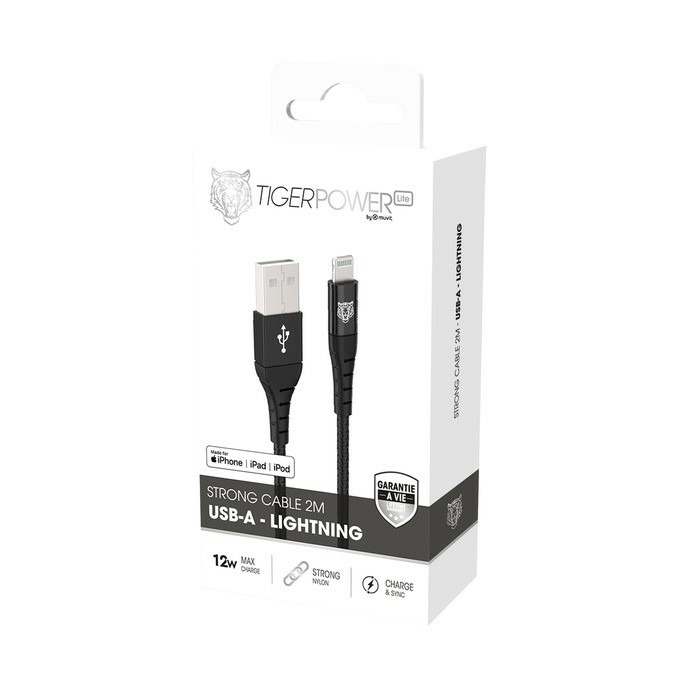 Tiger Lite - TIGER POWER LITE CABLE RENFORCE USB-A LIGHTNING 2M NOIR