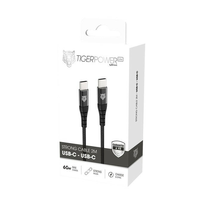 Tiger Lite - TIGER POWER LITE CABLE RENFORCE USB-C USB-C 2M NOIR