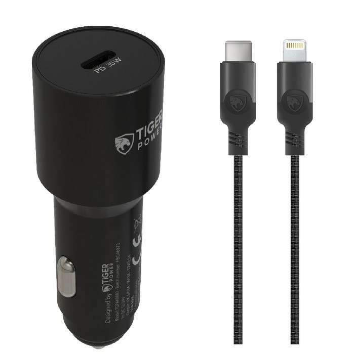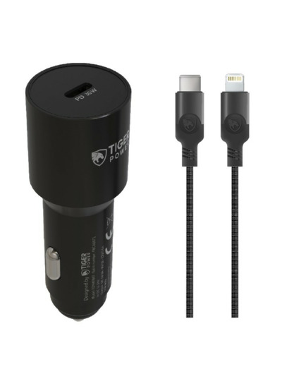 TIGER POWER PACK CHARGEUR VOITURE PD 30W + CABLE LIGHTNING 1,2M