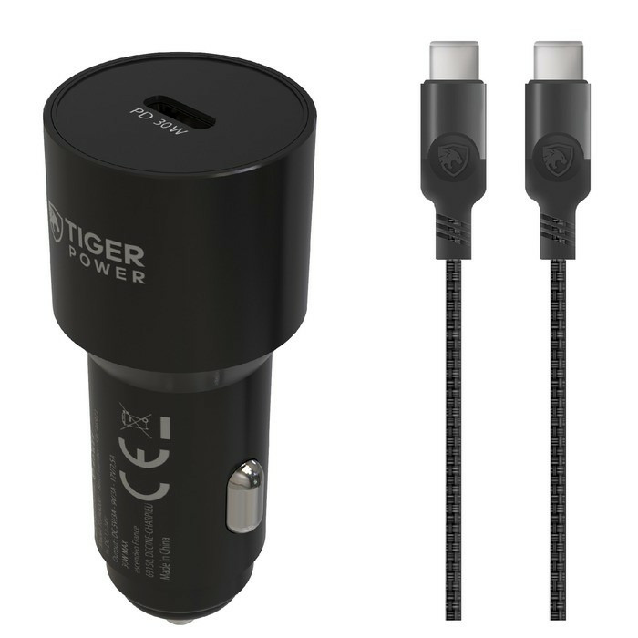 TIGER POWER PACK CHARGEUR VOITURE PD 30W + CABLE USB-C/USB-C 1,2M