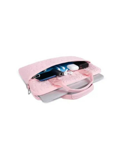 La housse arbore une teinte rose poudré élégante et un toucher textile agréable. Son tissu extérieur déperlant et ses coutures renforcées garantissent une excellente durabilité. L’intérieur est doublé d’un revêtement doux anti-rayures pour protéger l’écran et le châssis de votre ordinateur.