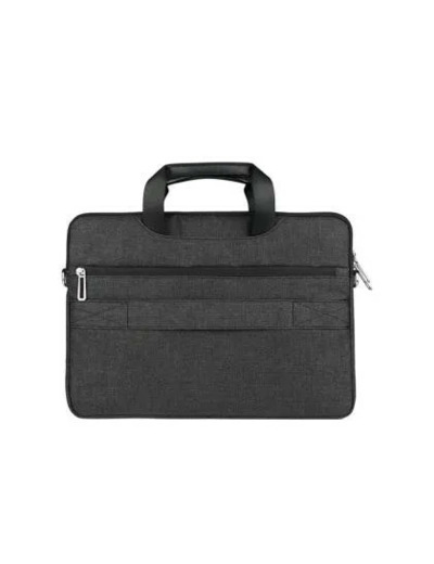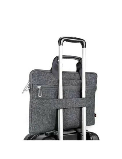 La sacoche dispose de plusieurs compartiments internes et externes : un grand compartiment principal pour l’ordinateur, une poche frontale zippée pour accessoires (chargeur, câble, stylet, souris, documents…). Sa structure permet une organisation simple et efficace, idéale pour le travail, les cours ou les déplacements professionnels.