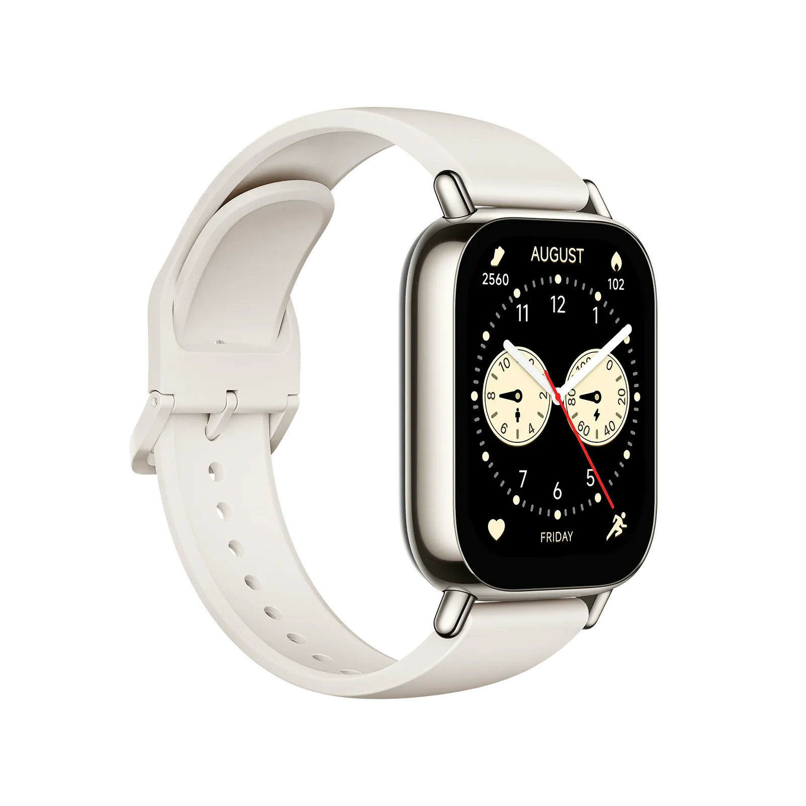 La montre est certifiée 5 ATM : vous pouvez l’utiliser sous la pluie, sous la douche ou pendant vos sessions de natation. Son bracelet en silicone reste agréable même en cas de transpiration, et son design sobre en Noir ou Beige s’adapte à tous les styles.