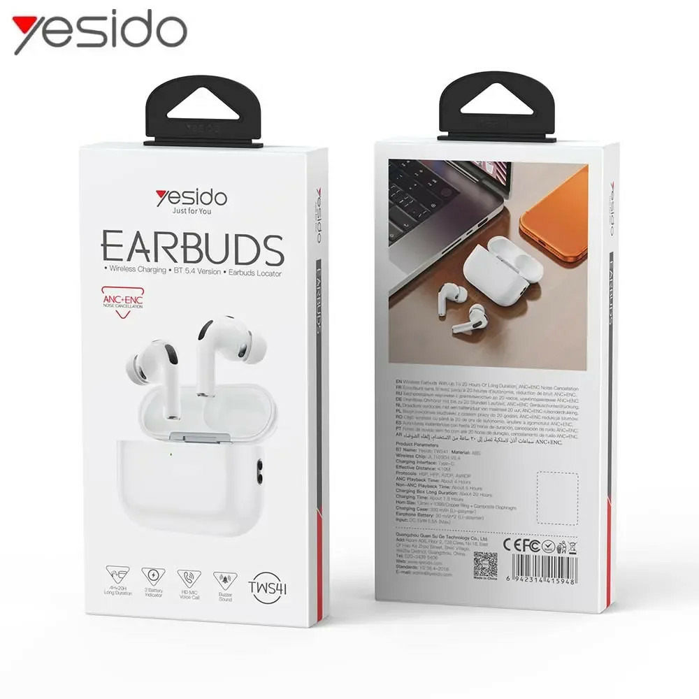 ✓ YESIDO TWS41 — écouteurs Bluetooth TWS avec réduction de bruit ANC + ENC ✓ Bluetooth 5.4 (puce JL 7100D4) ✓ haut-parleurs 13 mm ✓ autonomie ~4–5 h (jusqu’à 20 h avec boîtier) ✓ recharge USB-C ou sans fil