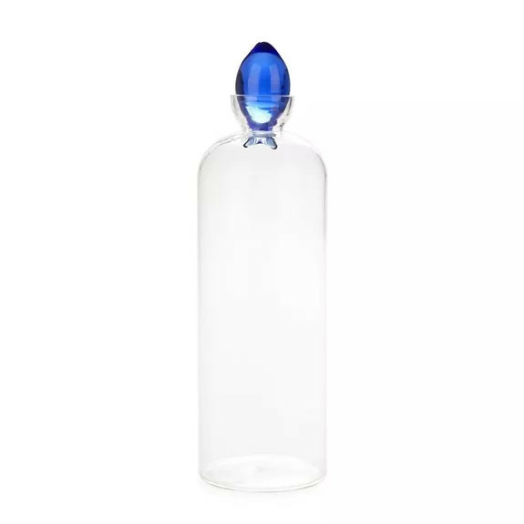 Bouteille Gourami 1.1 L, en borosilicate. Un petit poisson en verre coloré fait office de bouchon. C'est pourquoi le soupçon d'originalité, très discret, enjolivera votre table avec élégance. De plus le verre borosilicate fait de votre flacon un élément assez peu fragile de votre table, malgré sa légèreté.