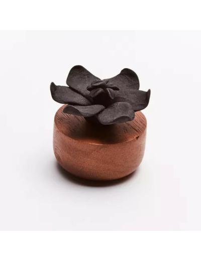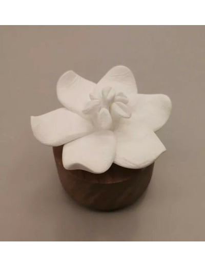 Diffuseur de parfum et huiles essentielles. Fleur en porcelaine, base en bois d'Acacia. Produit artisanal réalisé à l'atelier, avec des matériaux naturels.