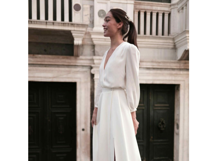 Jolie blouse Emma ample en crêpe de soie blanc cassé. La blouse intemporelle pour se dire oui et indispensable au quotidien !