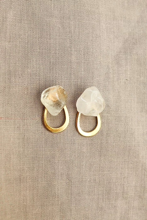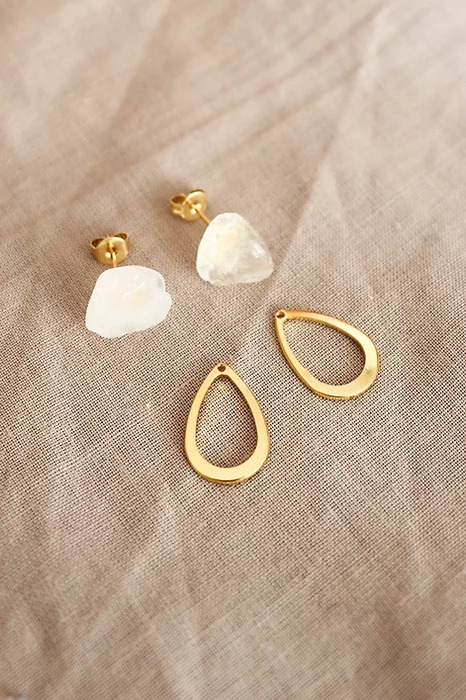 Boucles d'oreilles 2 en 1 avec un quartz poli. Le quart est la pierre universelle, il facilite la circulation des énergies et vous apportera sagesse et apaisement.
