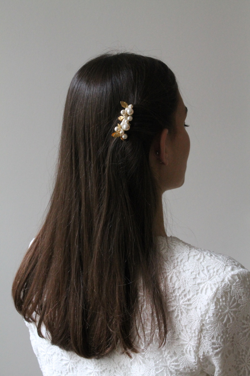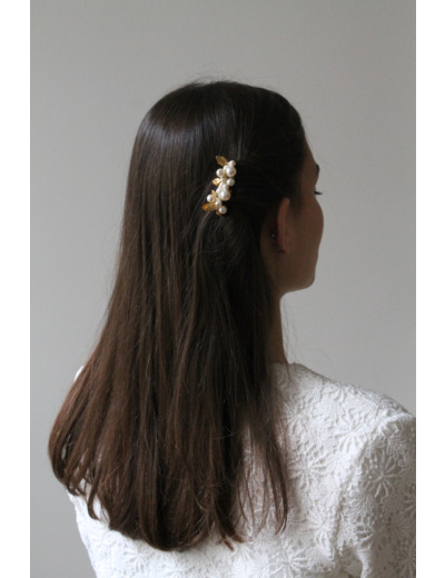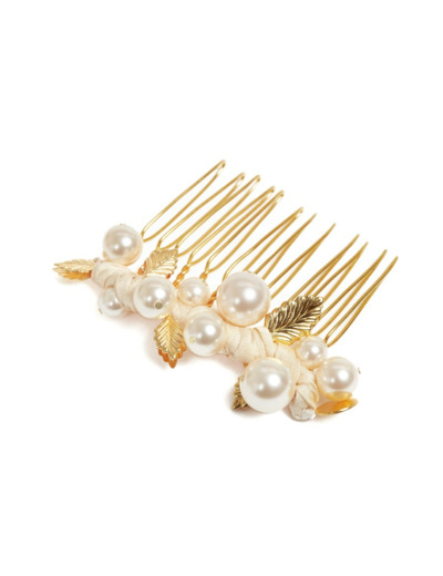 On aime l'association des perles de nacre et des petites feuilles dorées, qui offre un côté à la fois bohème et sophistiqué.