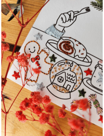 La carte à broder “Goûter de Noël” de la marque Maison Camomille te plonge dans une ambiance chaleureuse et sucrée.