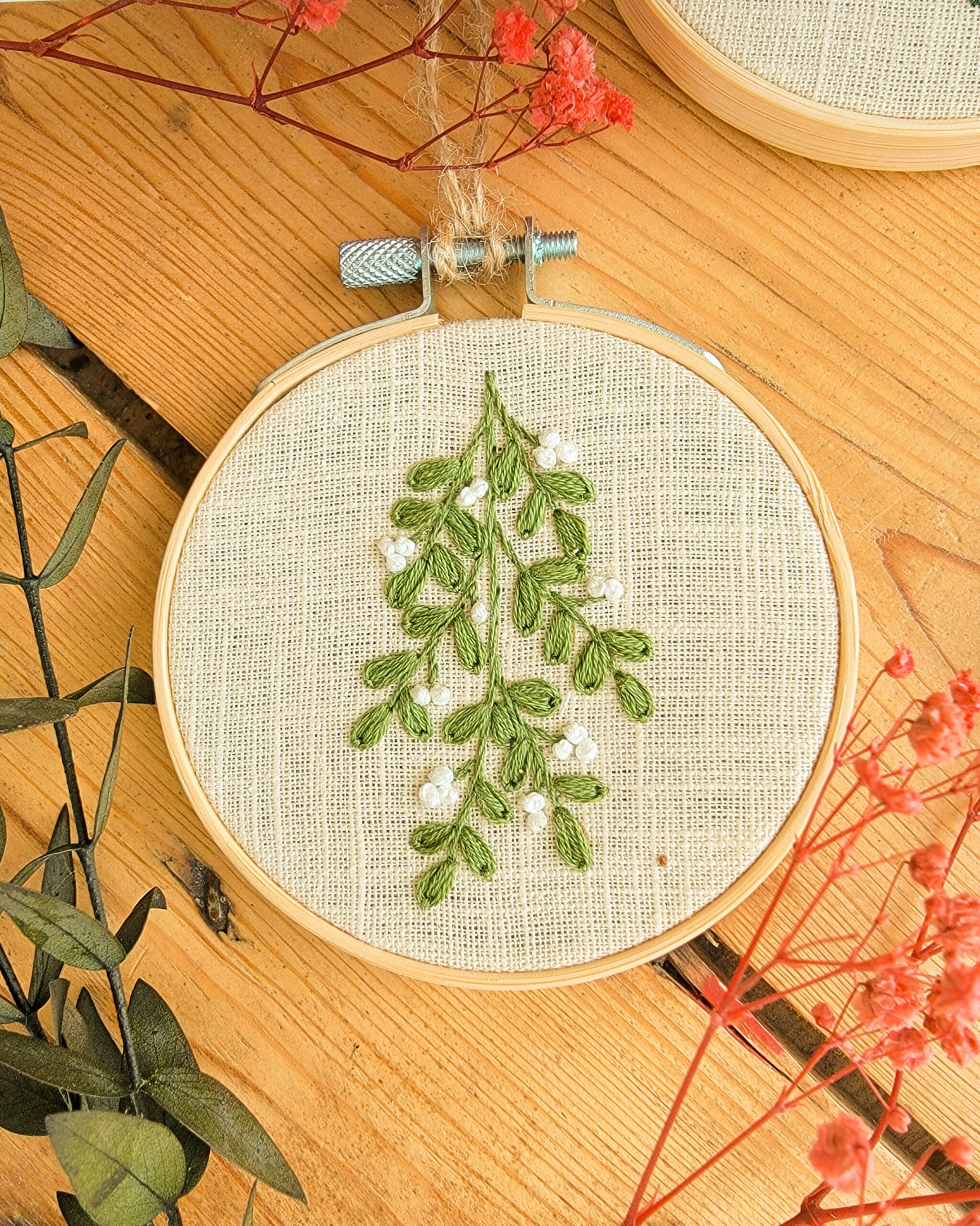Tu peux l’offrir à une amie brodeuse ou t’en servir pour préparer des cadeaux brodés uniques : une guirlande murale, une décoration de sapin ou une suspension artisanale à ressortir chaque année.