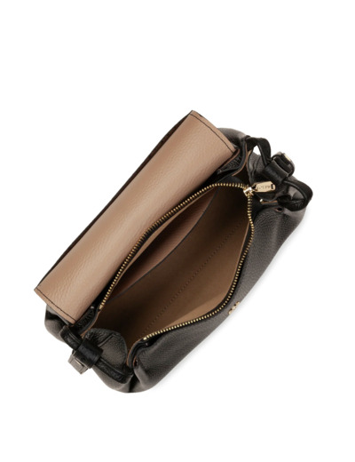 Ce sac trotteur est confectionné de cuir de vachette grainé. Il possède une poche frontale simple, deux poches intérieures simples ainsi qu'une poche extérieure arrière simple. Il se porte à l'épaule ou croisé.