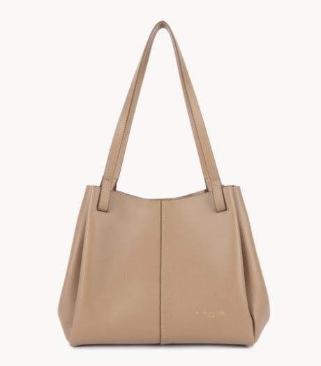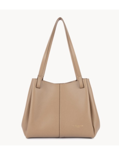 Ce grand sac cabas épaule de la ligne Sierra Haus est confectionné de refente de cuir de vachette finition grainé. Il possède trois poches intérieures simple. Grâce à des aimants discrets, les côtés du sac se replient pour offrir deux formes différentes : une version cabas ouverte ou une version plus structurée.