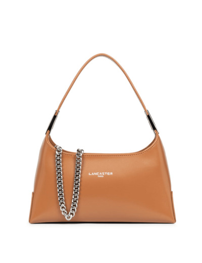 Ce petit sac baguette est confectionné de refente de cuir de vachette lisse. Il comporte une grande poche intérieure avec une chaîne métallique. Il se porte à la main, à l’épaule ou croisé.