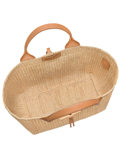 Pour cet été, découvrez le sac cabas porté épaule de la ligne Roseau en raphia tissé à la main. Ce cabas façon panier à des poignées et une garniture en cuir de veau. Fermeture roseau en bois d'érable.