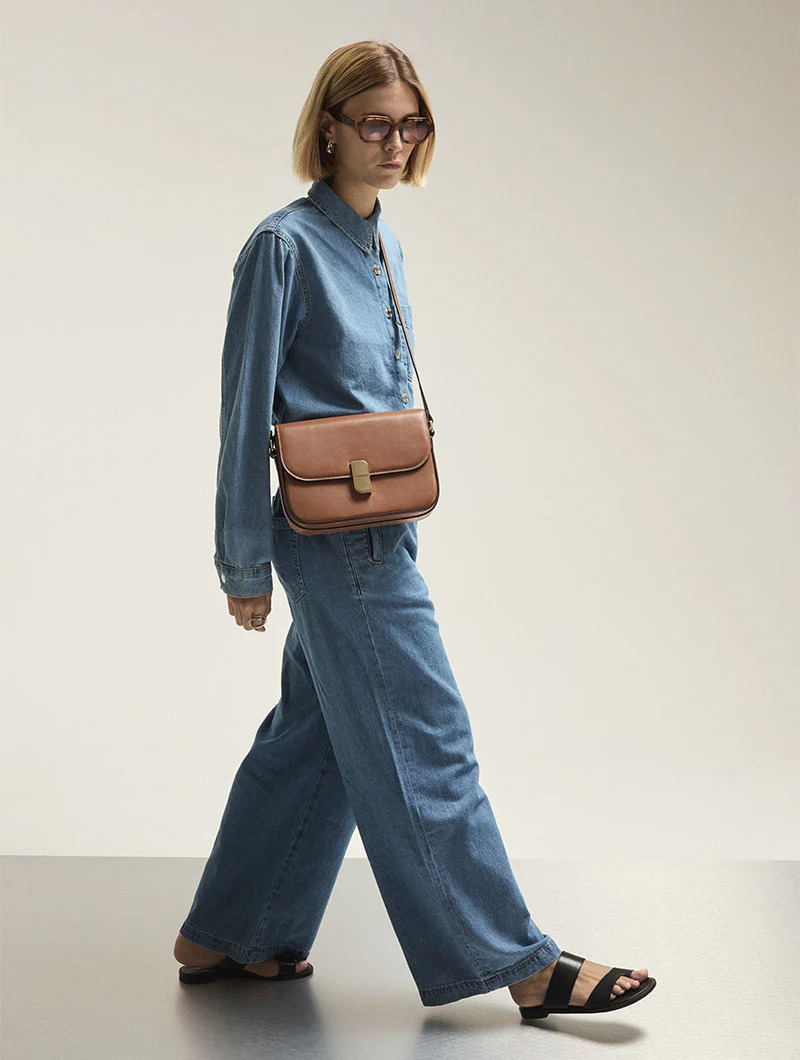 Ce sac bandoulière en cuir séduit par sa silhouette rectangulaire et ses lignes épurées, pensées pour s'adapter à toutes vos tenues.