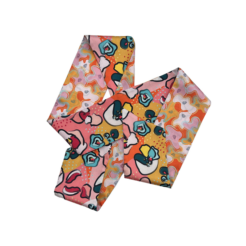 Dans une démarche zéro déchet, les rubans sont confectionnés à partir des chutes de tissus des foulards.