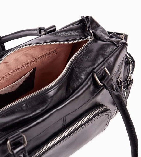 - Intérieur : une poche zippée, un porte-cartes et deux poches plaquées