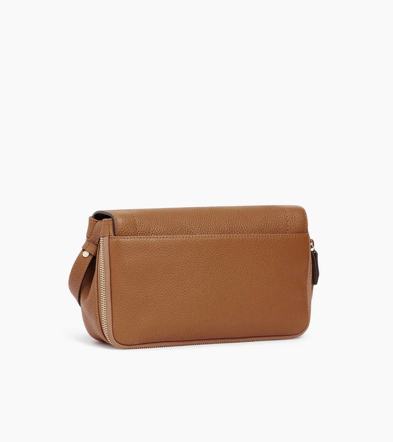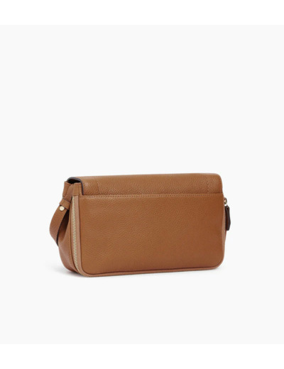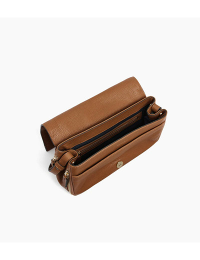 Besace à rabat moyen modèle avec marquage Le Tanneur et doublure Crépuscule. Porté croisé ou épaule grâce à ses deux bandoulières ajustables. Cuir de vachette pleine fleur grainé. Doublure textile bleu marine. 2 poches plates et 1 poche zippée. 2 soufflets zippés, 1 poche arrière bouton aimanté. Bandoulière ajustable et mini bandoulière porté épaule. Accessoires métalliques finition doré clair.
