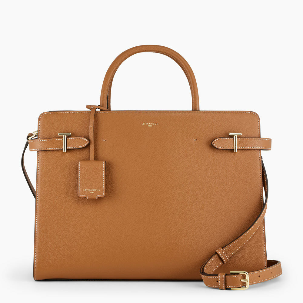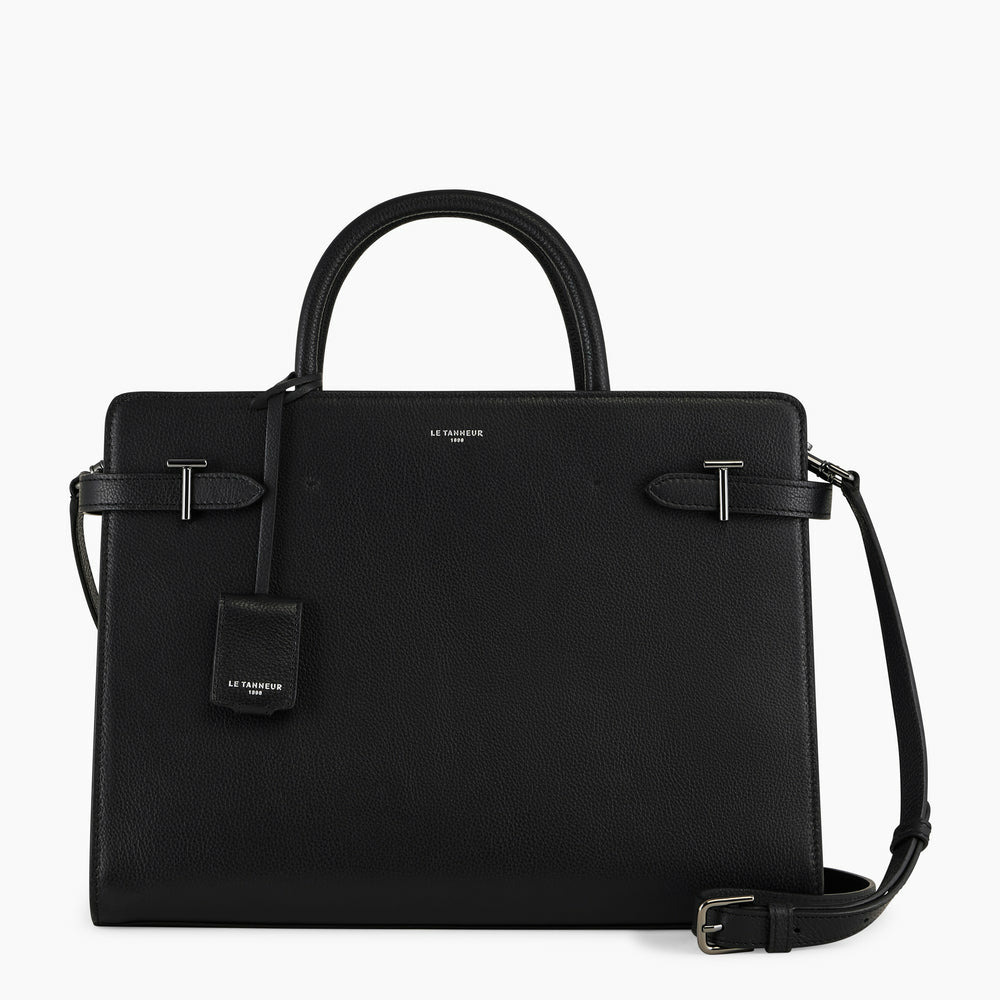 Grand sac à main avec charms et fermoirs T signature. Porté main, épaule ou croisé grâce à sa bandoulière ajustable et amovible.