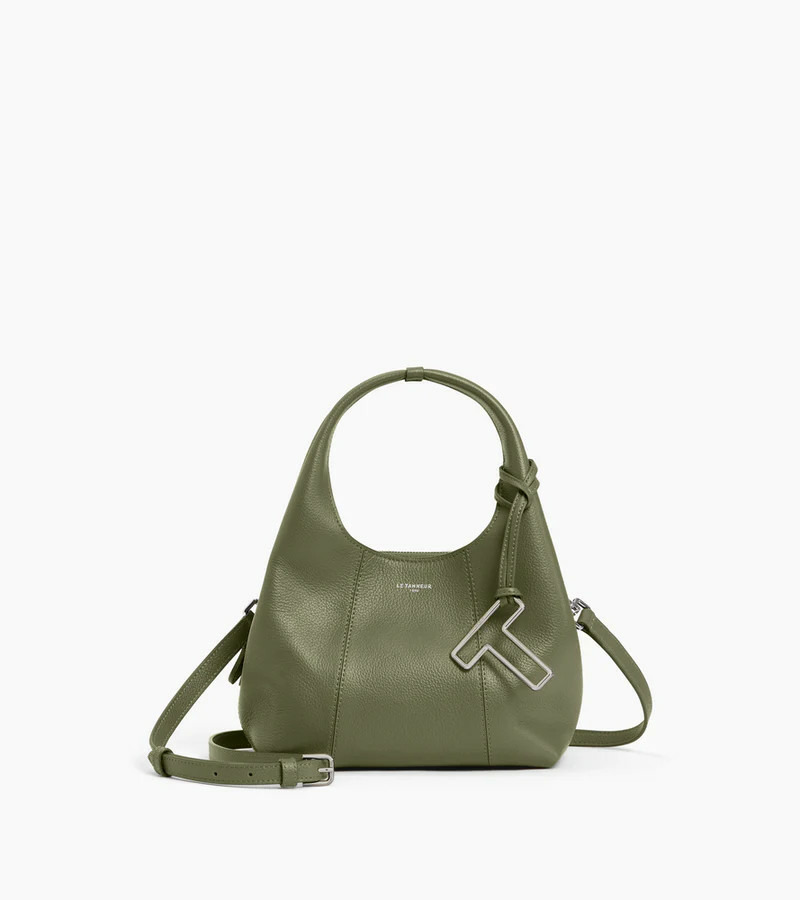 Ce petit sac à main souple, en cuir grainé et aux lignes sans découpe, arbore un charms T finition doré clair signature de la Maison. Il se porte à la main, à l'épaule ou croisé avec sa bandoulière amovible.