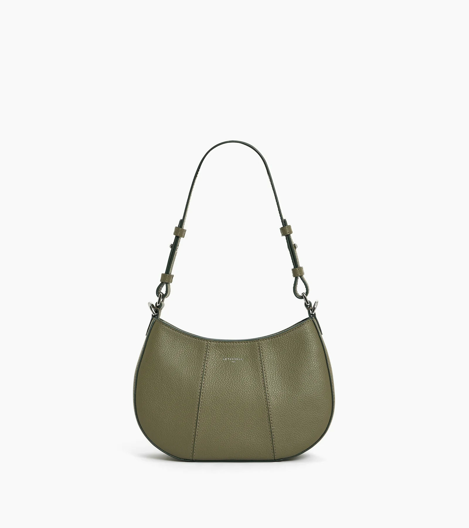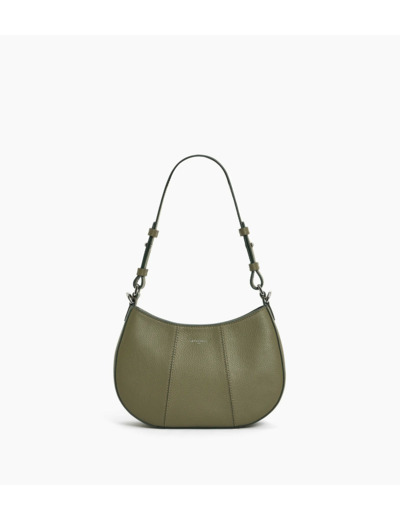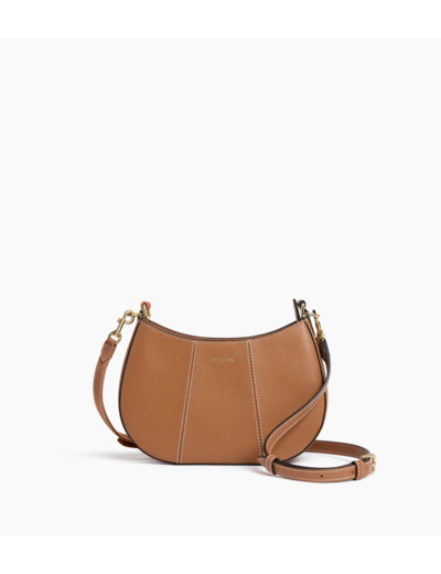 Petit sac demi-lune avec doublure jacquard crépuscule et marquage Le Tanneur. Double porté grâce à sa mini bandoulière porté épaule amovible et sa bandoulière porté croisé ajustable et amovible.