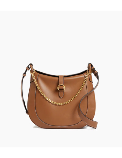 Remarquable a sa bijouterie signature, il peut se porter a la fois main grâce a la petite chaînette mais également épaule et porter travers garce a la bandoulière cuir qui est amovible et réglable
