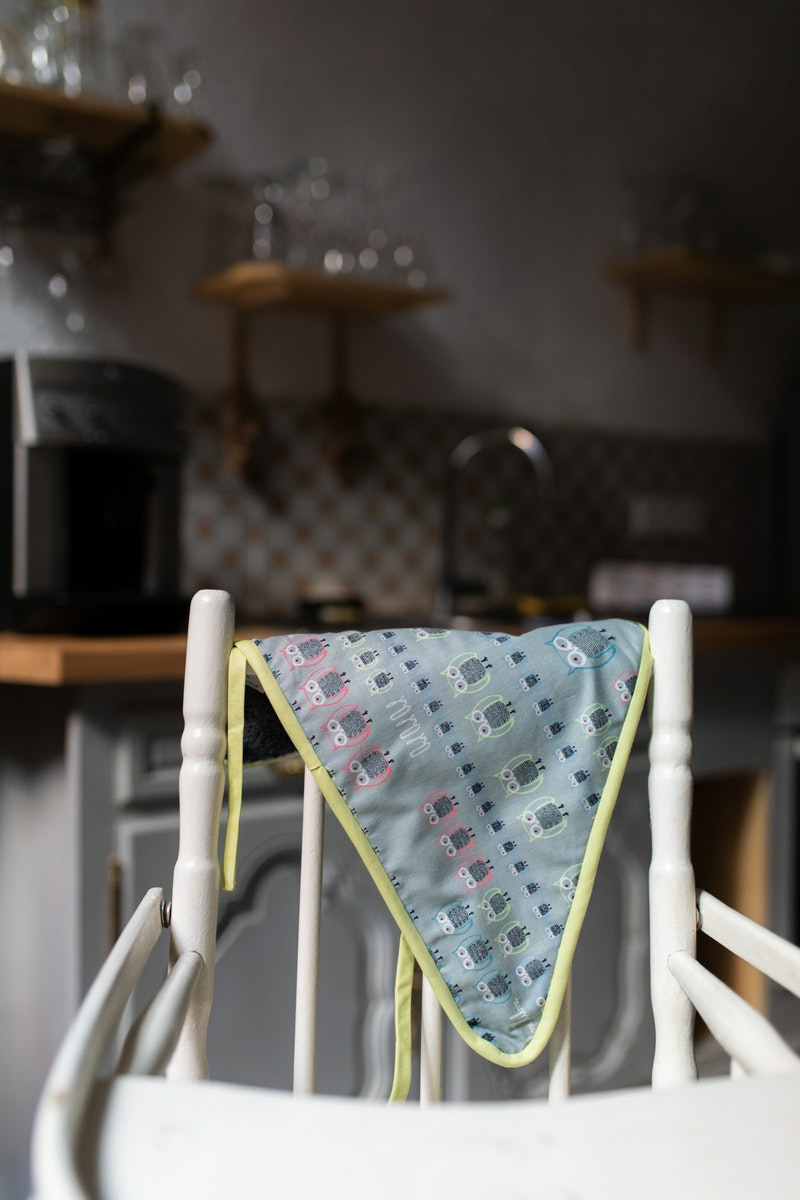 Le bavoir bandana s'attache autour du cou de votre nourrisson tout en douceur grâce à ses lanières en tissu exlcusivement en coton 100% biologique.