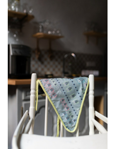 Timbou le hibou vous suggère de compléter la parure avec le grand bavoir, le gant de toilette ou le carré de bain pour prendre soin de la peau de votre Enfant.