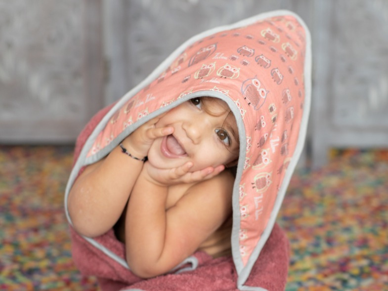 Parce que votre nouveau-né a un grand besoin de protection et de volupté dans vos bras, Suzette la chouette lui propose une cape de bain doublée au niveau de sa tête pour assurer un séchage doux de sa fragile tête et un enveloppement qui le sécurise.
