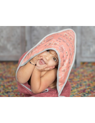 Entièrement composée de coton 100% biologique, la cape Suzette la chouette assure à votre enfant la douceur et le cocooning d’une éponge de 600g/m2.