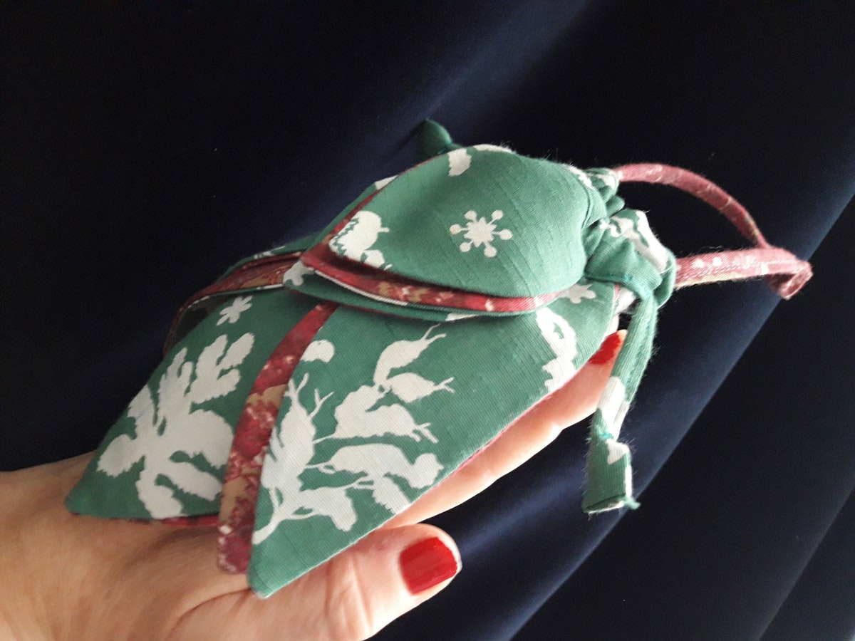 Petit coussin déco ou senteur, longueur 16 cm, tout textile, coton majoritaire, vendue garnie de foin, création artisanale MINA.T upcycling