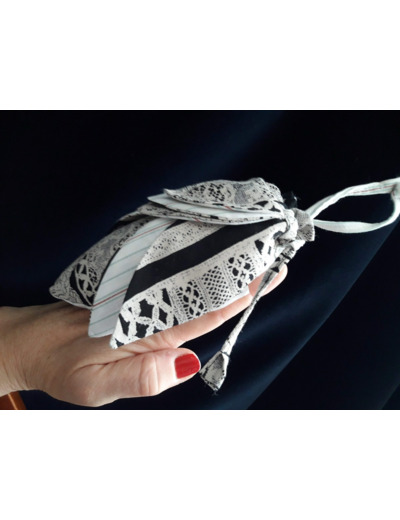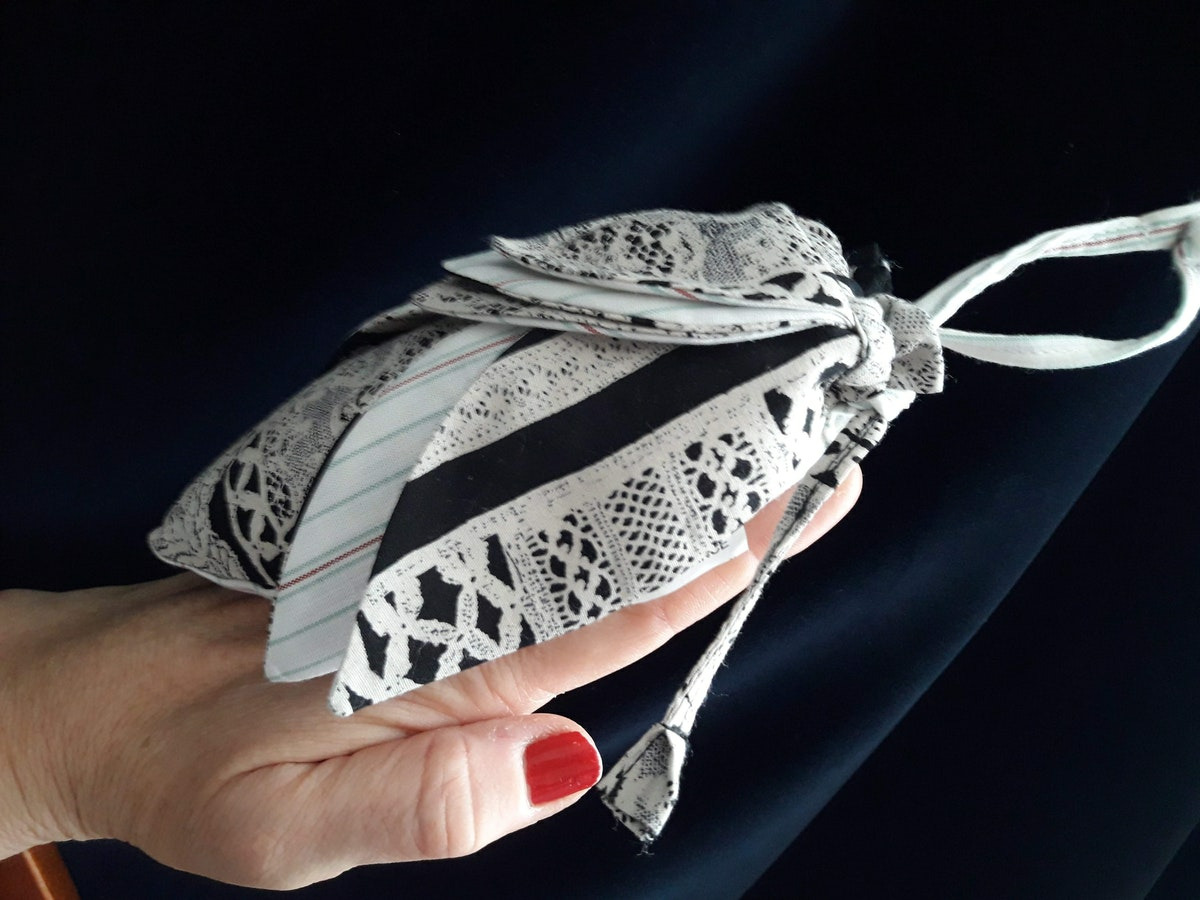 Petit coussin déco ou senteur, longueur 16 cm, tout textile, coton majoritaire, vendue garnie de foin, création artisanale MINA.T upcycling