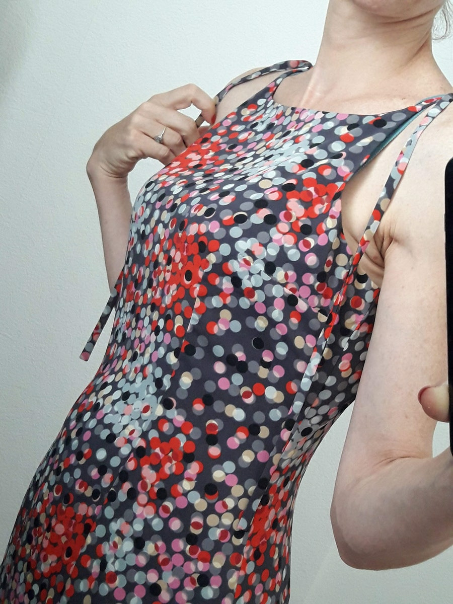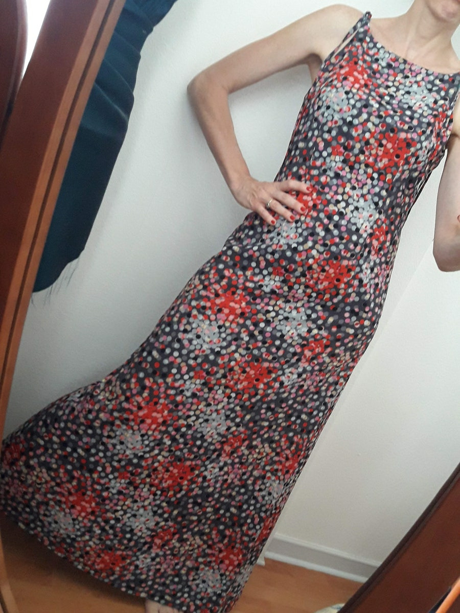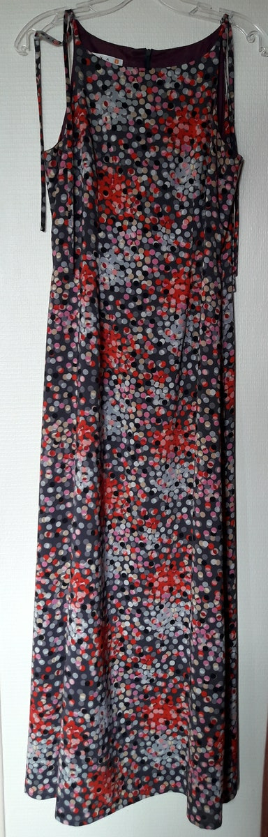 Robe longue doublée, zipée dos, liens à nouer aux épaules, imprimé, 100% polyester