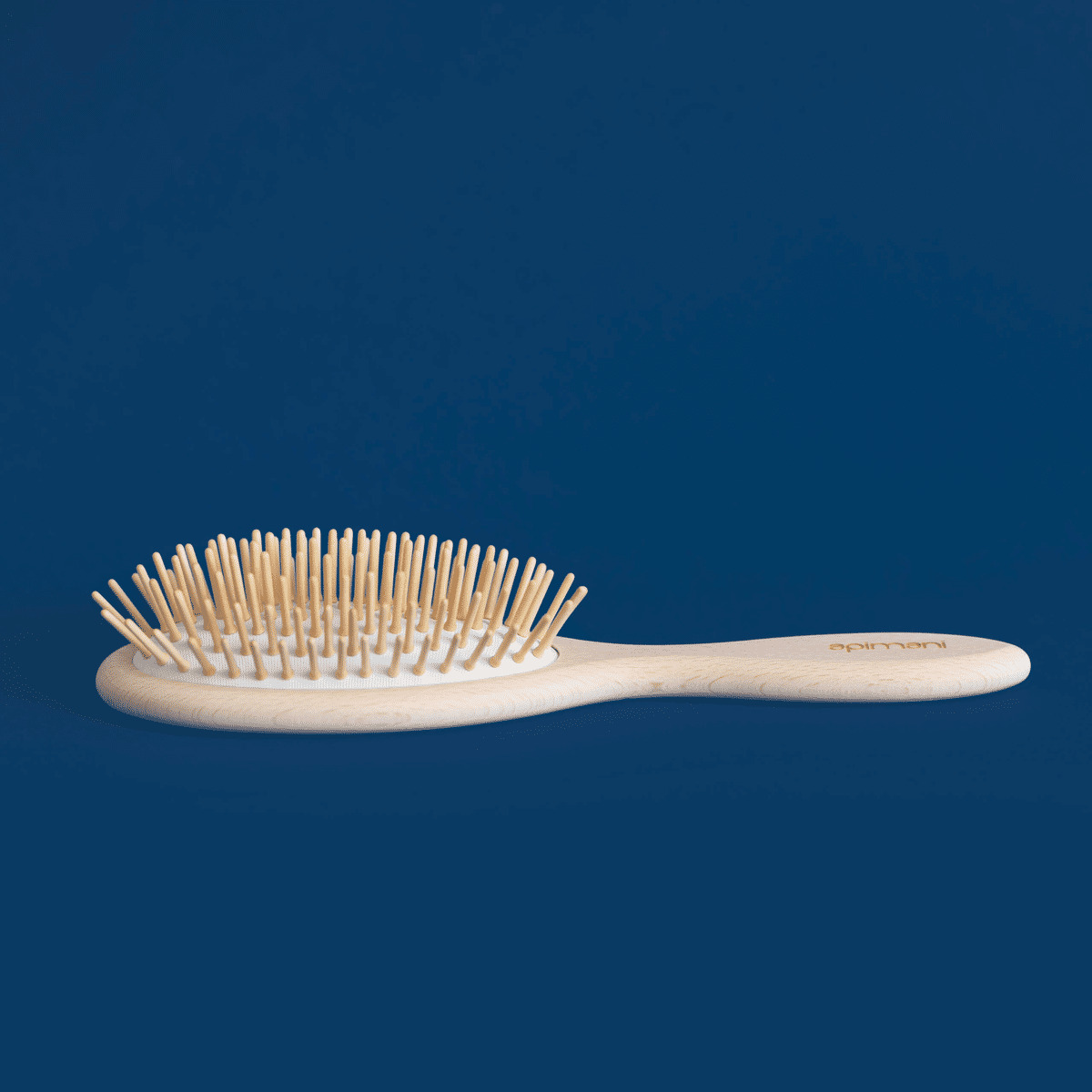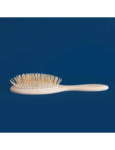 Cette brosse à picots de bois démêle et coiffe vos cheveux. Sous ses picots en bois se trouve un coussinet en caoutchouc naturel d’hévéa. Ce dernier favorise la croissance et la pousse de vos cheveux et surtout permet un brossage alliant démêlage et massage du cuir chevelu.