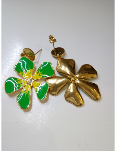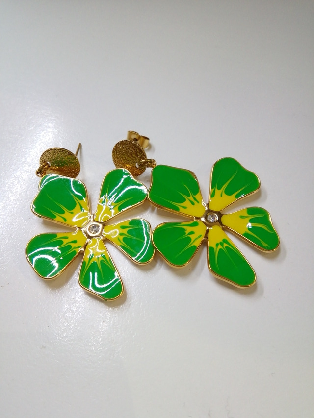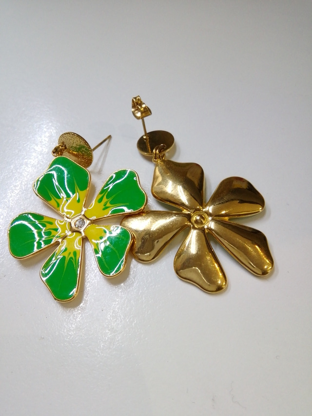 Chaque boucle d'oreille arbore un magnifique motif de fleurs mesurant 37 x 32 mm, délicatement émaillées pour un éclat intemporel. L'ajout de strass scintillants apporte une brillance subtile, parfaite pour illuminer votre visage lors de toute occasion.