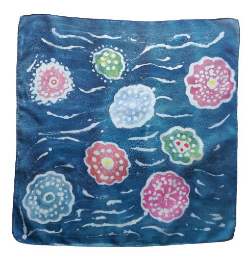 Description du produit : Petit carré en soie 100% naturelle, peint main, dessin unique, dimensions 55x55cm