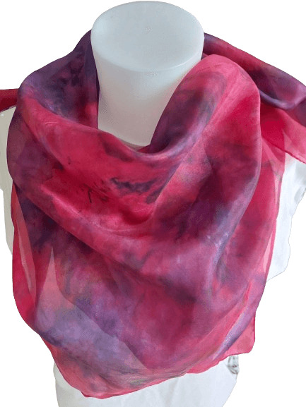 Description du produit : Foulard en soie 100% naturelle, dimensions 89cm x 89cm, dessin unique, peint à la main, lavage délicat à la main dans l'eau froide avec un shampooing doux