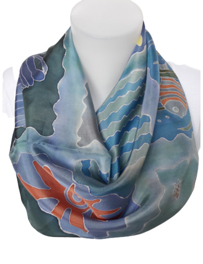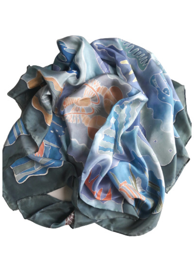 Grand carré de soie naturelle " La mer "