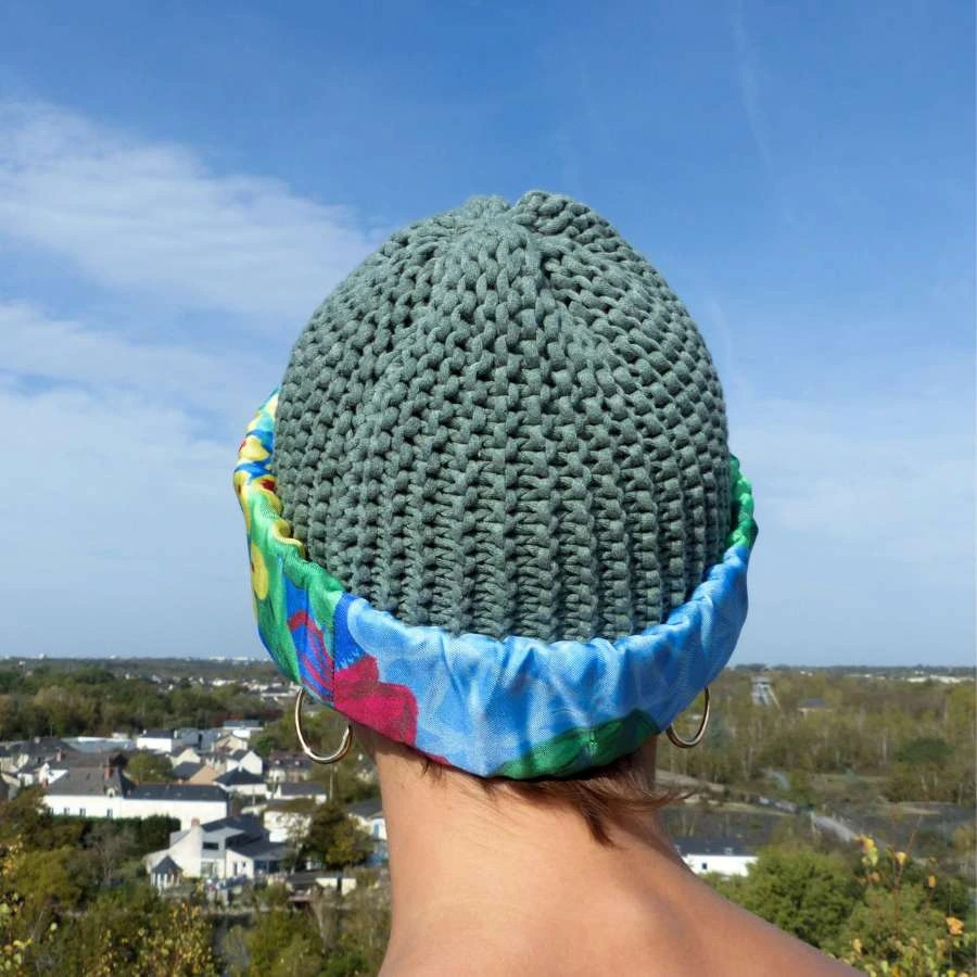 Composition : fil nylon cagé coton, revers soie française labellisée GOTS.