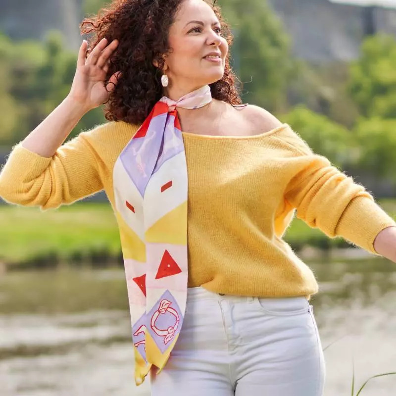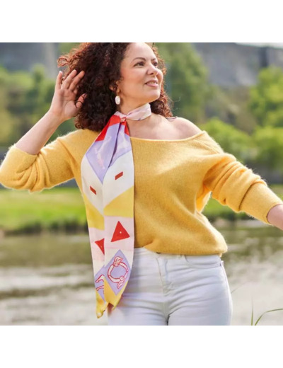 Le grand ruban en soie La Danse est un beau cadeau à offrir ou s’offrir. Original, coloré, artistique et écoresponsable, il fera pour sûr une belle surprise ! Chaque pièce est ainsi emballée avec soin, accompagnée de la carte racontant l’histoire du tableau et les conseils d’entretien de la soie.