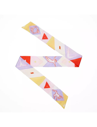 Le grand bandeau en soie La Danse est imprimé en recto et verso de dessins uniques. La Danse est empreint de liberté et s'inspire de la citation de Milan Kundera sur la partition musicale qu'est la vie.