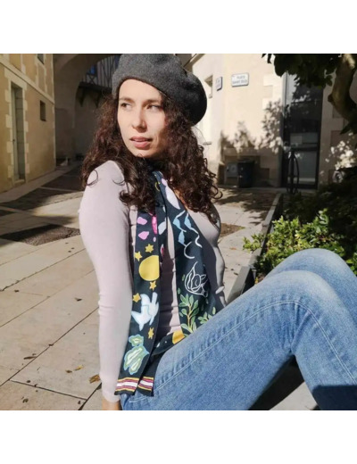 Le mot de l'équipe : Ourse Blanche est une artisane créatrice de carrés de soie imprimés à partir de dessins entièrement peints à la main dans son atelier angevin. Les foulards, de qualité twill de soie, sont imprimés en édition très limitée dans des ateliers en France et en Italie; les bords sont roulottés à la main. De belles pièces de soie aux couleurs vives pour des femmes pétillantes et élégantes, parfaites pour offrir ou pour se faire plaisir !