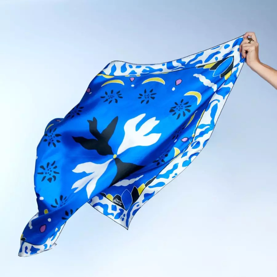 Ce grand carré de soie est un cadeau d’exception à offrir ou s’offrir. Original, coloré, artistique et écoresponsable, il fera pour sûr une grande surprise ! Chaque pièce est ainsi emballée avec soin, accompagnée de la carte racontant l’histoire du tableau et les conseils d’entretien de la soie.
